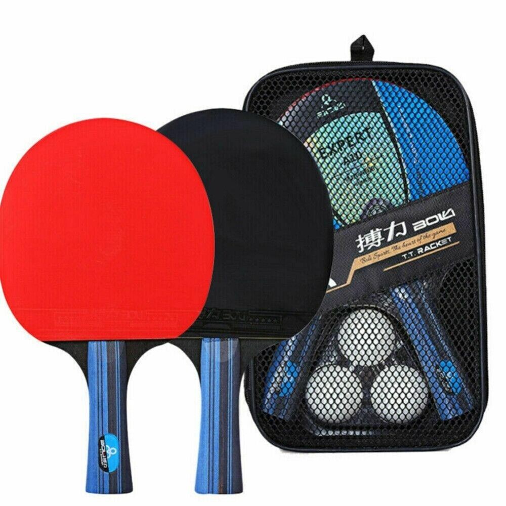 1 Pair Professional Table Tennis Ping Pong Racket Paddle Bat+3pcs Balls Bag Set