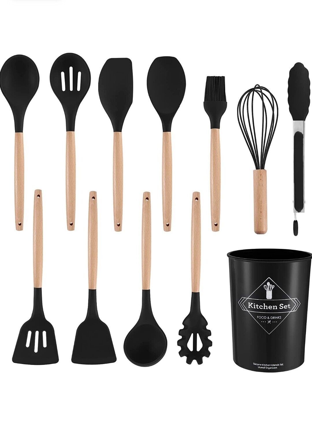 12-PCS Kitchen Silicone Utensil Set - Non Stick Cooking Utensils Wooden Handle
