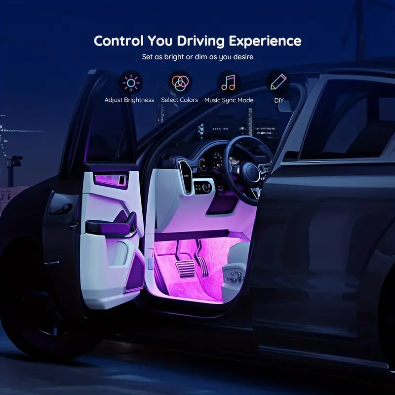 4 LED Smart Car Light Strips, 12V Music Synchronized Color-changing Light Strips, App, 44-key Remote Control, DIY Mode Brightness Adjustment Lights, For Various Car Models