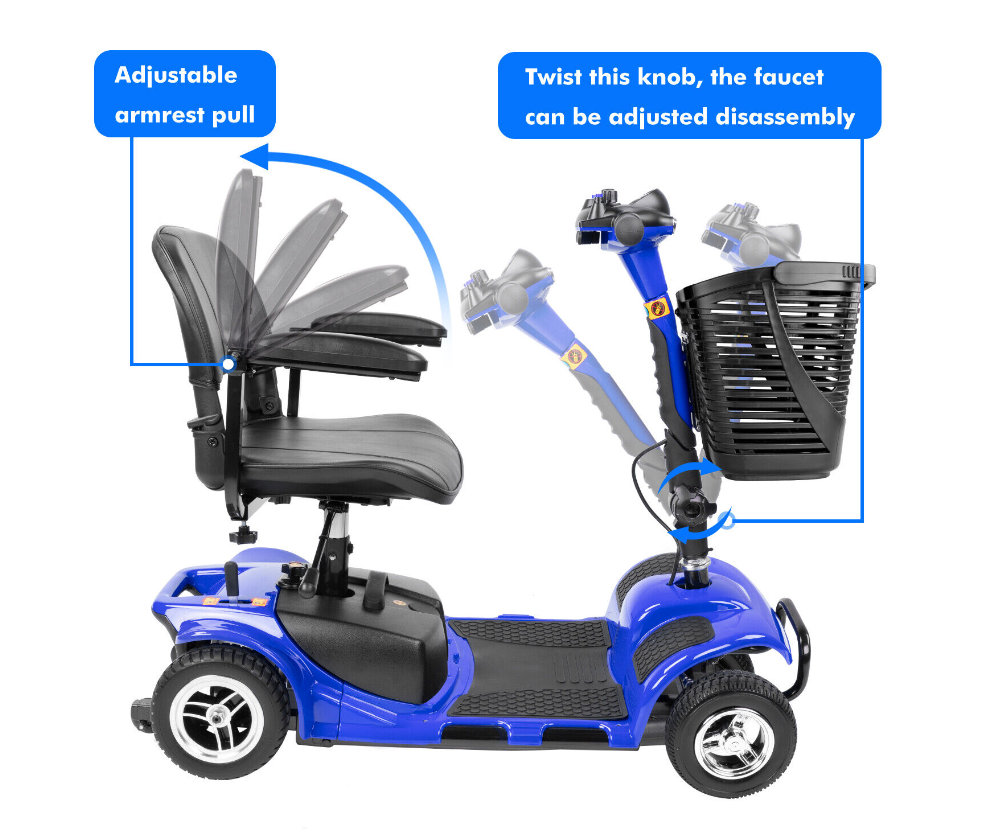 【 Easy to Transport 】 It is easy to disassemble the mobility scooter into four separate pieces without tools, you can put them in the trunk of standard size vehicles and making your travel much more convenient and comfortable!
