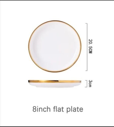 Ceramic Tableware Dinner Set Round White Color With Gold Rim Plates For 1 Person