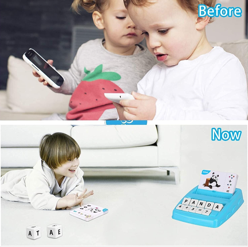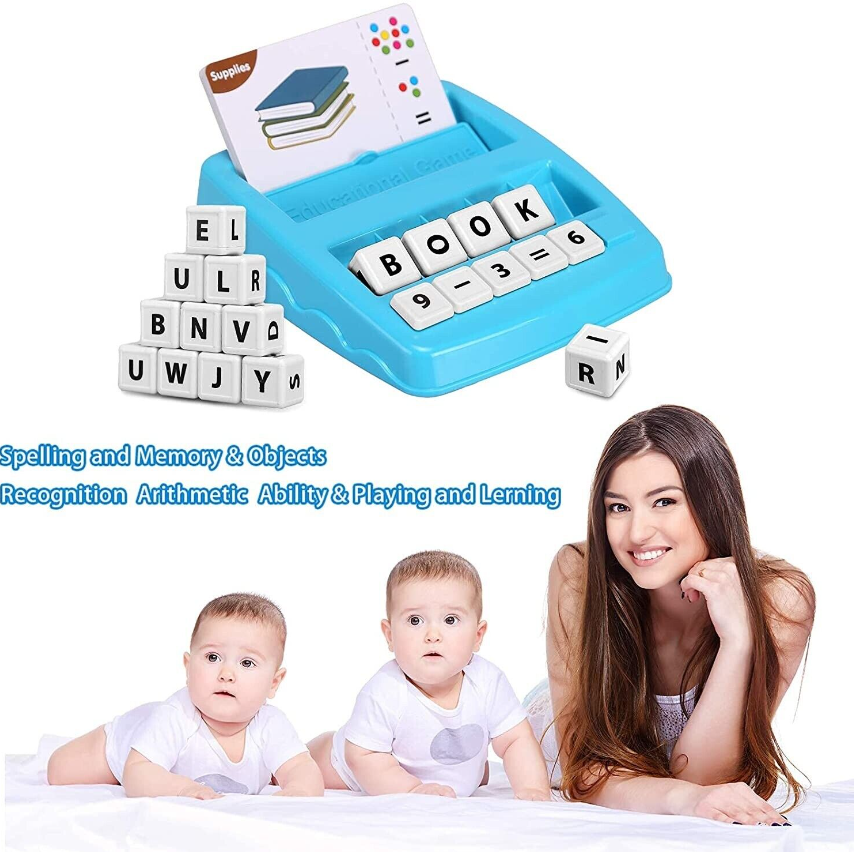 • 1.2-in-1 Spelling & Counting Educational Toys - Each card shows a picture of an object which kids are familiar with and arithmetic operation. Put the card in the card holder, kids need to find the right letters/numbers and put the letter/number cubes on the letter/number holders to complete the matching letter game.