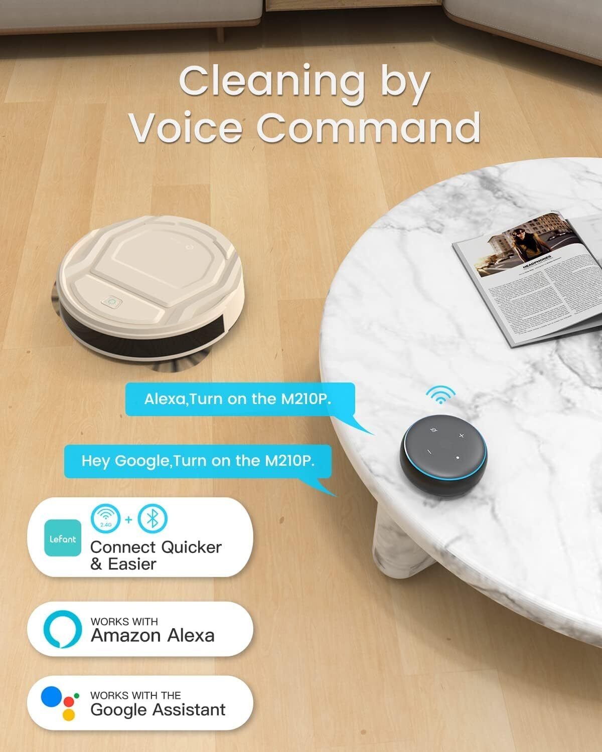 Lefant M210 Pro Robot Vacuum Cleaner, Tangle-Free 2200Pa Suction, Slim Quiet
