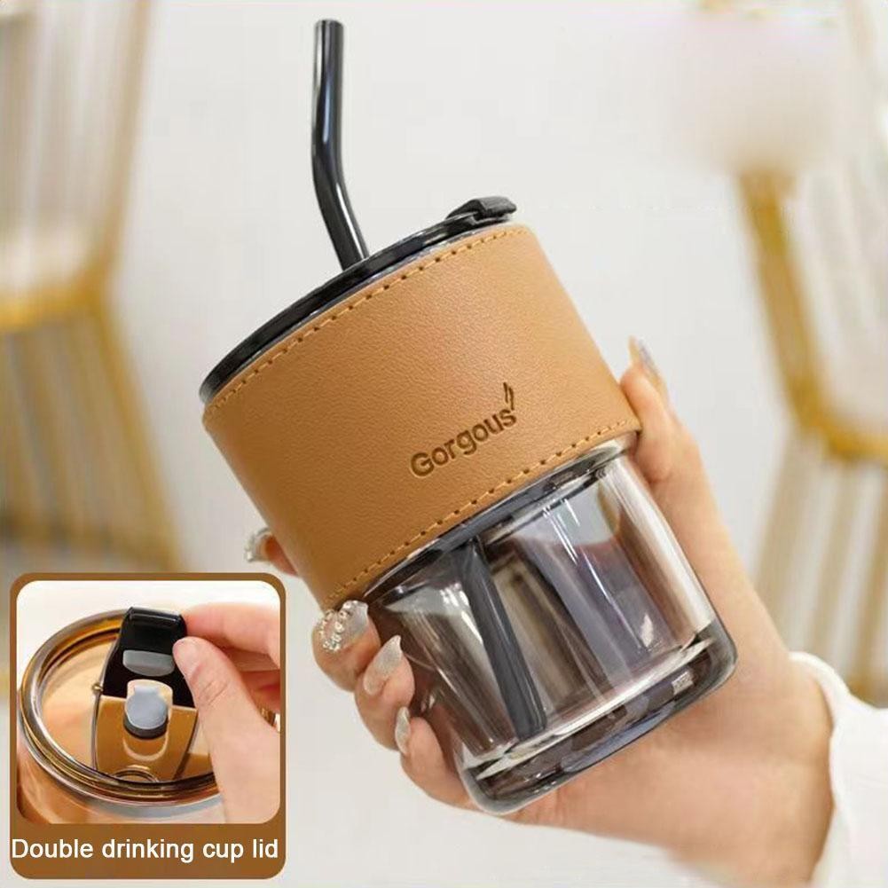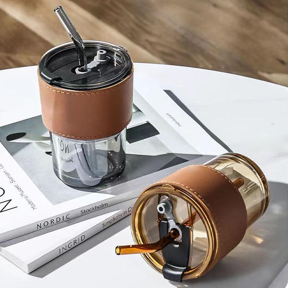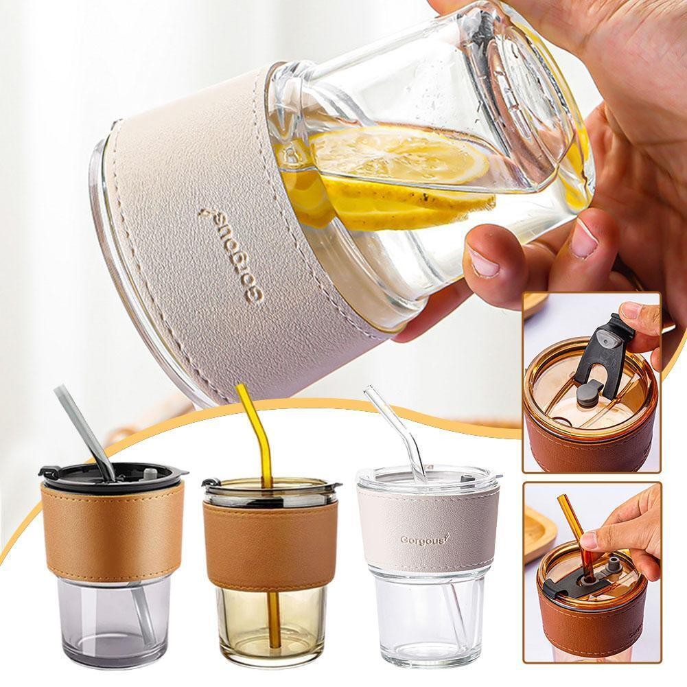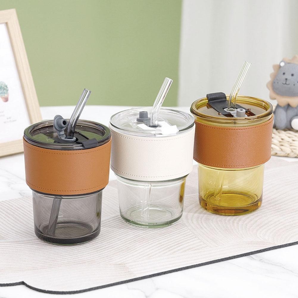 Lid And Straw Transparent Bamboo Cup Milk Coffee Mug Tea Cup Stripe Glass Cup G7