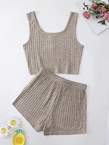 SheIn Women's 2 Piece Sleeveless Button Crop Tank Tops and Shorts Lounge Set