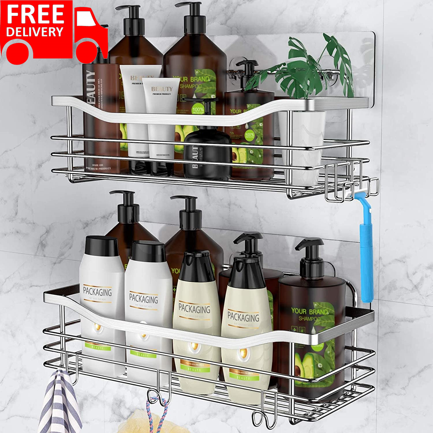 3 x Adhesives, 2 x Shower Caddies, 1 x Manual