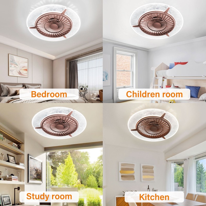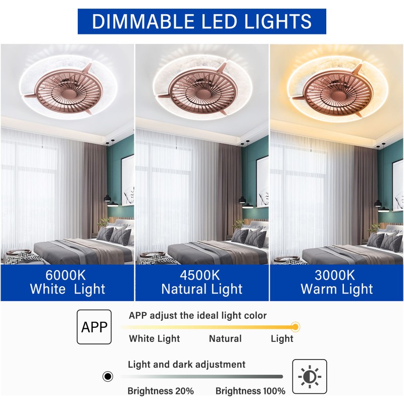 Dimmable Fan Ceiling Chandelier Flush Mount LED Light Lamp Lighting Remote
