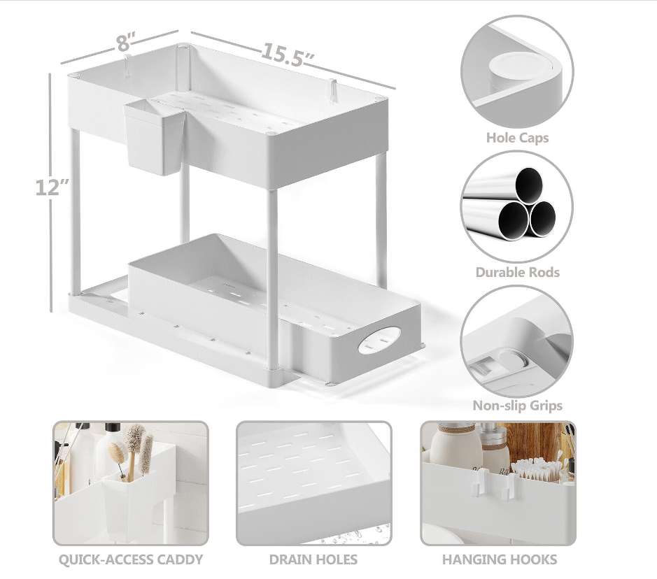 Under Sink Organizer with 2 Tier Sliding Drawers - Bathroom Cabinet Organizer