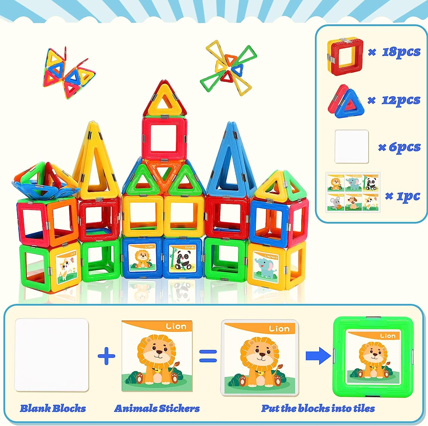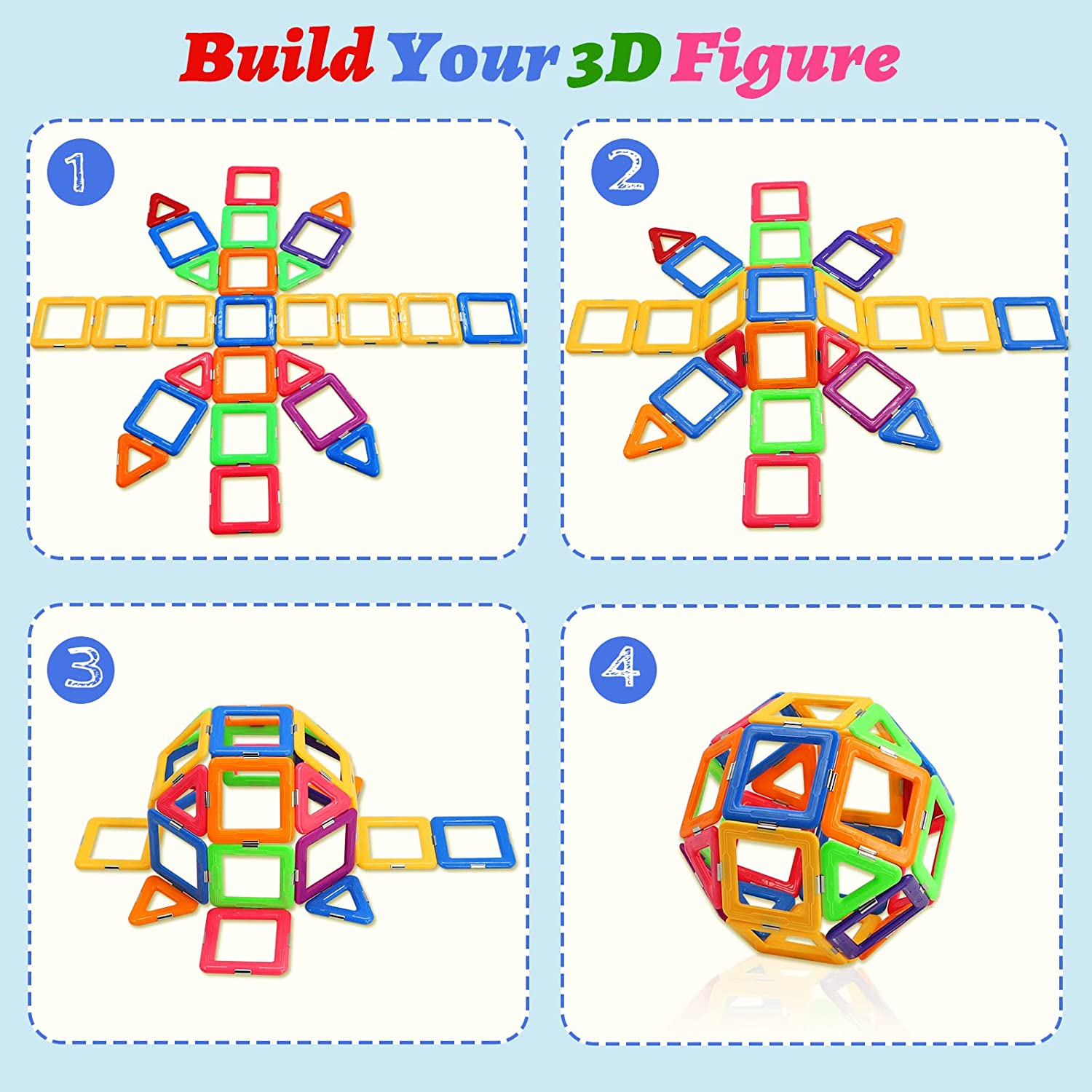Upgraded Magnetic Tiles for Kids Ages 3-5 4-8 STEM Educational Gifts Toys for 3+