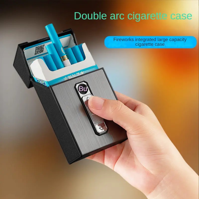 Waterproof Metal Cigarette Case with Double Arc Electronic Lighter and USB Charging