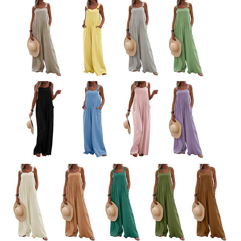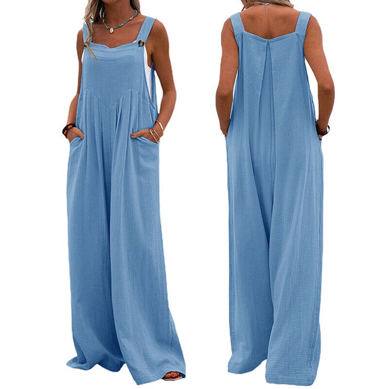 Women Jumpsuit Pants Ladies Playsuit Romper Wide Leg Trousers Dungaree Plus Size