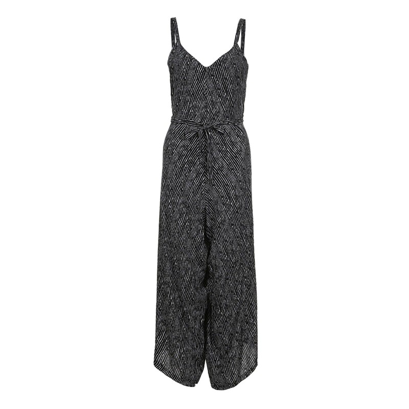 Women's Striped Printed Suspenders Loose One-piece Wide Leg Pants Jumpsuit