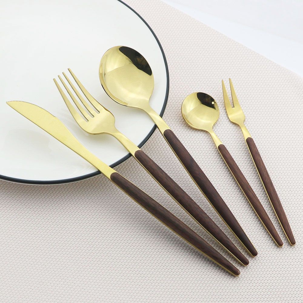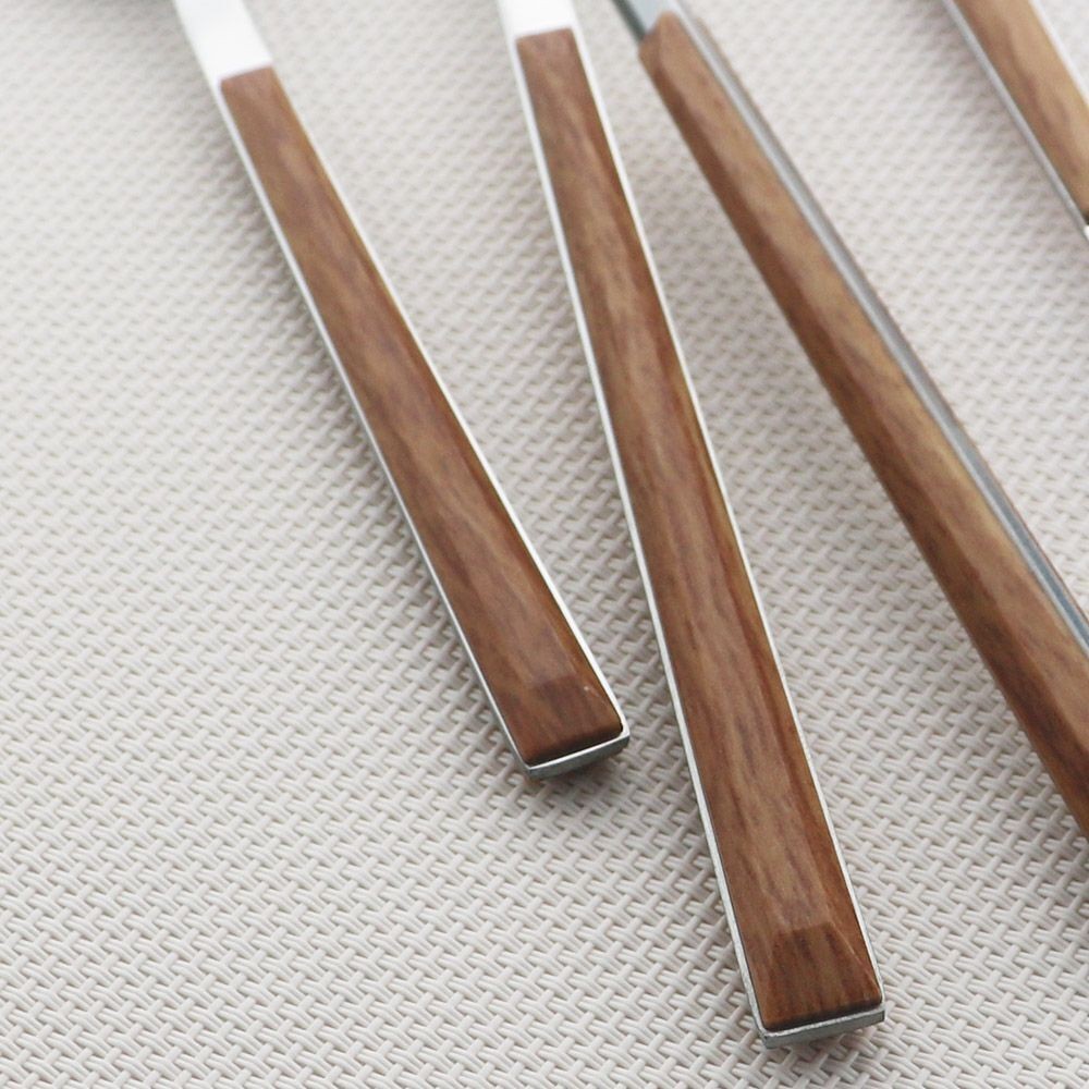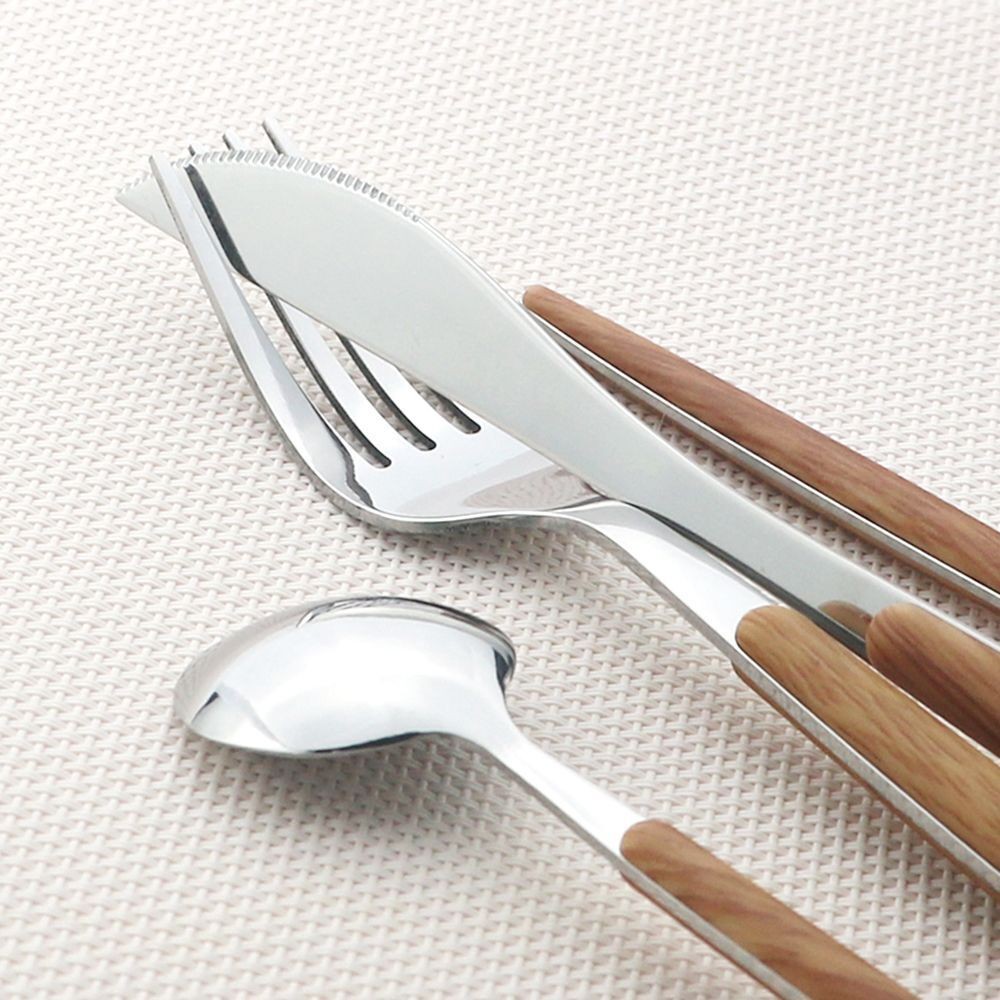 Wooden Handle Cutlery Stainless Steel Knife Fork Spoon Dinnerware Tableware Tool
