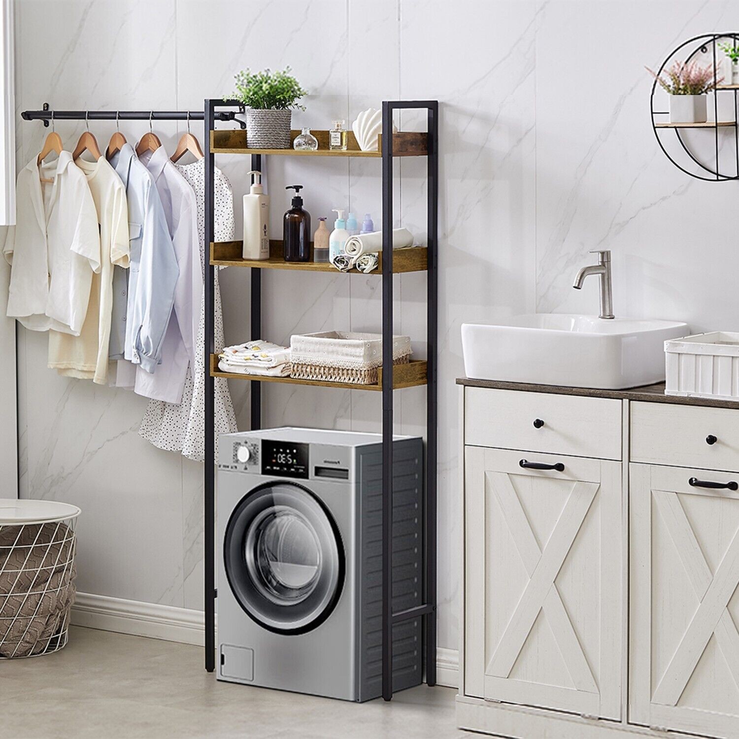 Wooden Over the Toilet Bathroom Storage 3-Tier Shelf Rack Metal Frame Organizer